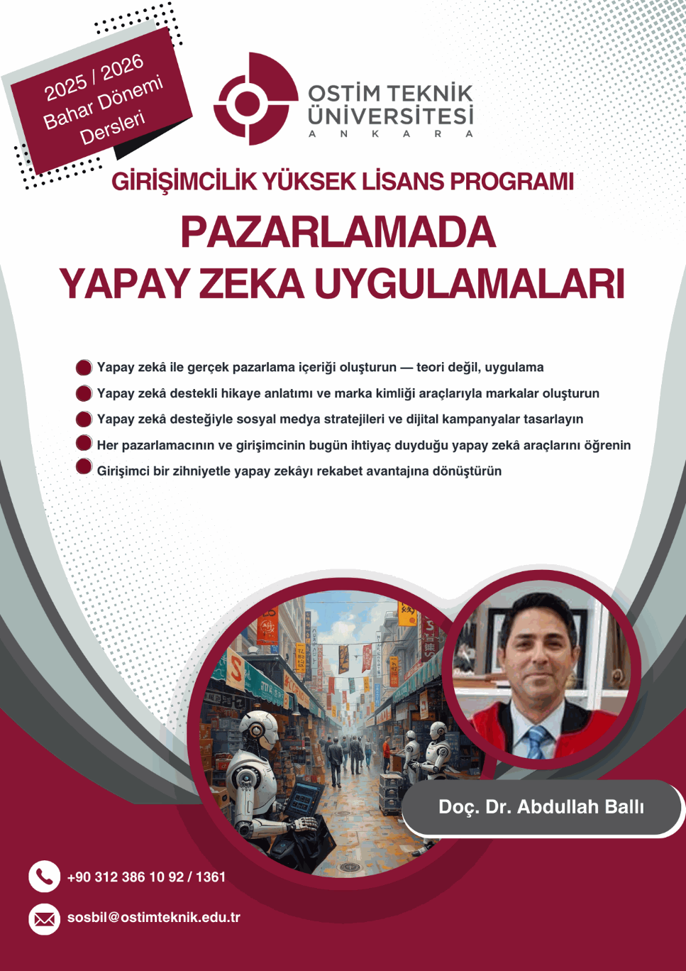 OSTİMTECH; nörobilim, nöropazarlama ve yapay zeka destekli medya üretimi alanlarında hem güçlü saha deneyimine hem de saygın bir akademik geçmişe sahip akademisyenimiz tarafından verilecek yepyeni dersi gururla sunar.