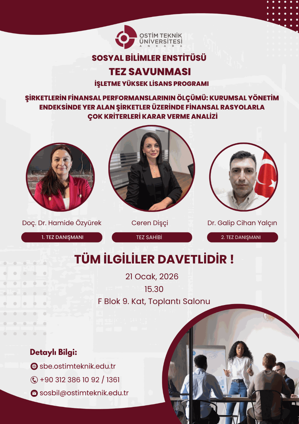 OSTİM Technical University, Graduate School of Social Sciences, is pleased to announce the master’s thesis defense of Ceren DİŞÇİ, conducted within the Business Administration Master’s Degree Program.