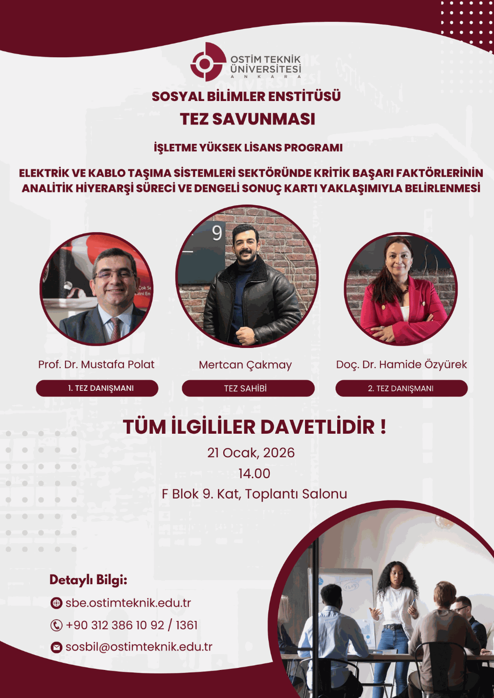 OSTİM Technical University, Graduate School of Social Sciences, is pleased to announce the master’s thesis defense of Mertcan ÇAKMAY, conducted within the Business Administration Master’s Degree Program.